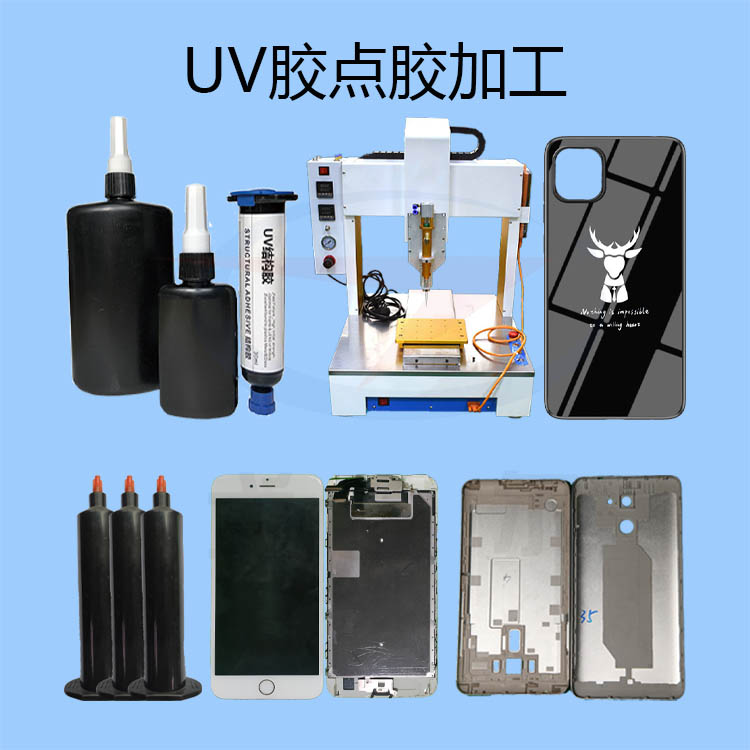 手機(jī)UV點(diǎn)膠加工完成后,確定好被粘結(jié)部位的位置后,將兩部分被粘物壓合到一起,根據(jù)產(chǎn)品固化條件選擇合適的(一般默認(rèn)波長為365nm~400nm)紫外燈進(jìn)行照射,并確認(rèn)紫外線能全方位照透。