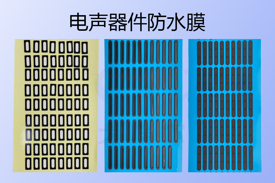 有了很多的防水解決方案,通用的電聲器件防水透聲解決方案基本上是采用戈埃爾電聲器件防水膜,根據不同的揚聲器、MIC、聽筒等聲學部件腔體而去應用不同的規格、尺寸、材料的