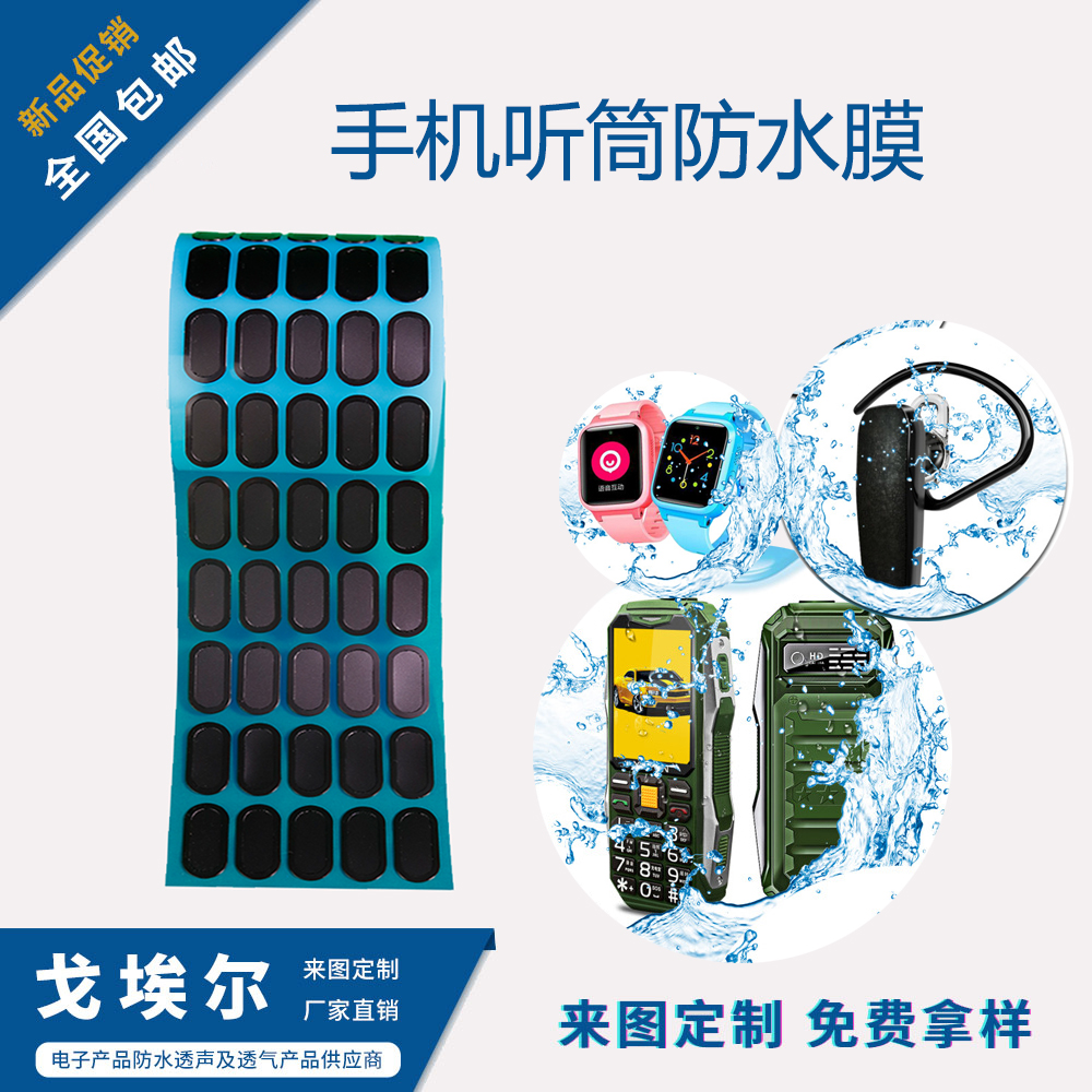 手機(jī)聽筒防水膜又稱防水透聲膜,是一種聚酯材料經(jīng)過特殊工藝加工而成的,具有很強(qiáng)的拉伸性,是一款比較好的透音功能性薄膜材料,從名稱中便可得知防水透音膜具有防水以及透聲作用。透音是通過聲波傳入薄膜振動傳輸出來的。Goel防水透聲膜具有防水防塵、通音透音、聲損低等作用,根據(jù)應(yīng)用的電子元件來說有喇叭防水透聲膜、聽筒防水透聲膜、MIC防水透聲膜、揚(yáng)聲器防水透聲膜、麥克風(fēng)防水透聲膜、對講機(jī)防水透聲膜、音箱防水透聲膜、受話器防水透聲膜、蜂鳴器防水透聲膜、耳機(jī)防水透聲膜、智能穿戴防水透聲膜等聲學(xué)設(shè)備所用的防水透音膜。