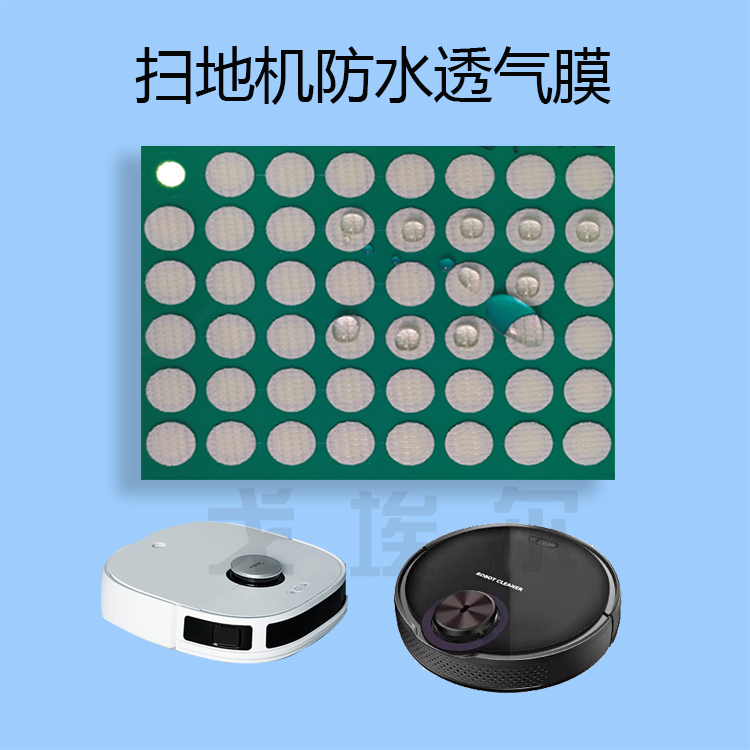 1、掃地機透氣防水膜的材料是高分子微孔結構,有很好的防塵防水透氣性能,還可以快速平衡密封腔體壓力;