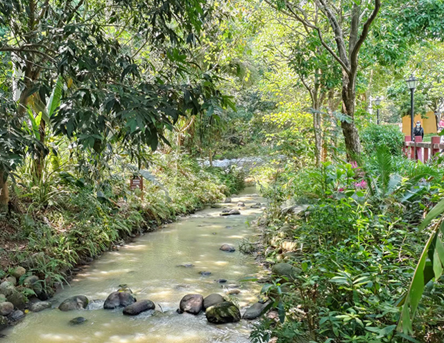 晴日暖風(fēng)熏人漾,醉入人間五月天。”對(duì)于陽臺(tái)山大家都并不陌生,站在山腳仰望,也許是前段時(shí)間下了一周雨的緣故,山間蔥郁的枝葉在光影中斑駁流離,宛如新綠,輕吸一口舒爽微涼的空氣,頓感心曠神怡。在山門合影留念之后,大家一起從山腳出發(fā),沿著山路蜿蜒而上。