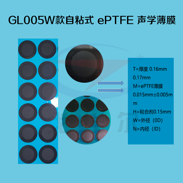 GL005W 是一款自粘式 ePTFE 聲學(xué)薄膜。該產(chǎn)品具防水防塵功能,防護(hù)等級 IP67,通過其內(nèi)部的多孔結(jié)構(gòu)實現(xiàn)透氣,調(diào)節(jié)封閉機(jī)殼內(nèi)部的壓差平衡,同時可以降低聲音傳輸損失,最低<2DB.該產(chǎn)品使用高粘度的粘合劑,使產(chǎn)品穩(wěn)固的粘合于機(jī)殼表面,氣流通過產(chǎn)品中間無膠區(qū)域進(jìn)行交換。