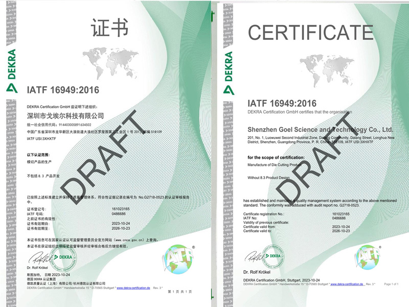戈埃爾科技榮獲IATF16949汽車行業(yè)質(zhì)量體系認證證書