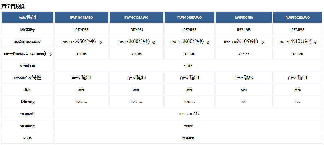 大家好,今天要跟大家分享的是戈埃爾聲學(xué)音頻膜的性能參數(shù)。